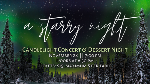 Women are invited to join us for an evening out with your friends, family, or co-workers. You can expect a delicious dessert and an incredible concert to kick off the Christmas season.